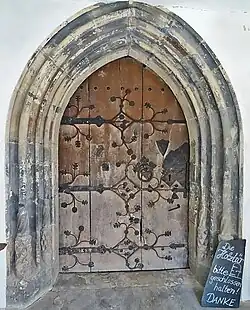 Die Gestaltung des Hauptportals auf der Südseite findet sich in ähnlicher Form an der Jenaer Michaelskirche wieder. Wie das Gewände stammt auch das Türblatt mit seinen Zierbeschlägen aus der Zeit des spätgotischen Neubaus.