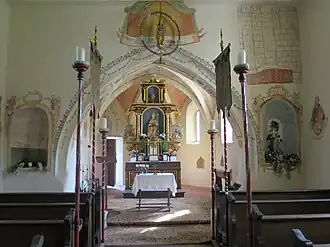 Im Frühjahr 1942 wurden die Glocken abgenommen und eingeschmolzen.[4] Nach dem Zweiten Weltkrieg wurde die Hochaltarfigur aus der Zeit um 1500[5] entwendet, die Herkunft der heutigen Figur ist ungeklärt. Überdies verschwanden die beiden Holzfiguren der Märtyrerheiligen Paulus und Johannes, die den Triumphbogen flankierten. Heute werden die noch vorhandenen Kostbarkeiten das Jahr über an einem sicheren Ort aufbewahrt.