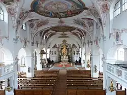 Die Innenausstattung in ihrer heutigen Form wurde in den 1950er Jahren vollendet. 1954 wurde die neue Orgel geweiht, der Kunstmaler Josef Braun aus Wangen im Allgäu schuf 1956/1957 die Ausmalung der Pfarrkirche.