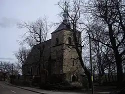 Die Kirche ist eine im Wesentlichen spätgotische Anlage aus der Zeit um 1500 mit dreiseitigem Ostschluss, die an der Dorfstraße auf dem umfriedeten Kirchhof über dem Nordhang des Nonnentals steht. Der annähernd quadratische Westturm mit gekuppelten Schallöffnungen stammt noch aus spätromanischer Zeit, das Westportal wurde zu spätgotischer Zeit mit einer heute verwitterten Stabwerkrahmung versehen. An der Südseite des Schiffes befinden sich ein vermauerter Oculus und mehrere nachträglich zur Abstützung angebrachte Strebepfeiler. Im westlichen Teil der Nordwand findet sich ein vermauertes neugotisches Portal mit der Datierung 1883. Renovierungen erfolgten in den Jahren 1714/15, in der zweiten Hälfte des 19. Jahrhunderts und im Jahr 1949.