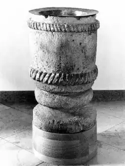 In jüngster Zeit konnte der ursprüngliche, gegen 1200 entstandene romanische Taufstein, der vorübergehend in Privatbesitz war, zurückgeholt werden. Er steht nun im Mittelgang der Kirche und ist der älteste sakrale Einrichtungsgegenstand. Der Taufstein ist in Pokal- beziehungsweise Becherform aus eierschalenfarbenem Sandstein des Typs Bentheim-Gildehaus gefertigt und ist zusammen mit dem mehrfach unterlegten, mittlerweile aus Holz bestehenden Sockel insgesamt 90 Zentimeter hoch und hat einen Durchmesser von 50 Zentimetern. Der obere und der untere Rand der Kuppa, des Beckenrands, sind mit aus dem Stein herausgearbeiteten dicken Zierkordeln umlegt, ansonsten ist der Stein schlicht und unverziert.