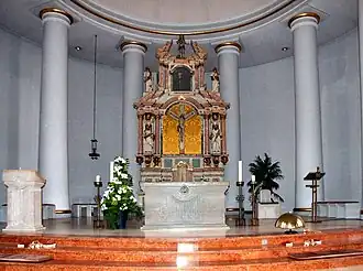 Ein Großteil der Kirchenausstattung stammt aus der barocken Kirche des 1816 säkularisierten Franziskanerklosters in Vechta.