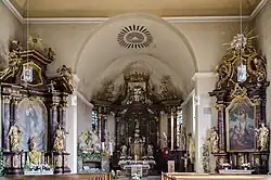 Der klassizistische Hochaltar entstand in Donnersdorf. Um den zentralen Kuppeltabernakel mit zwei Engeln gruppieren sich auf hohem Sockel die Heiligen Vitus, Joachim, Anna und Kilian. Sechs korinthische Säulen tragen ein Gebälk, über das sich auf vier Voluten eine Krone (Baldachin) erhebt.
