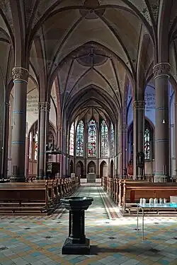 Trotz der Erweiterung wurde die Kirche nur wenige Jahre später wieder zu klein. Daher beauftragte der Kirchenvorstand 1895 die Architektengemeinschaft Carl Rüdell und Richard Odenthal aus Köln mit der Planung einer neuen Pfarrkirche. Nachdem die alte Kirche abgebrochen war, wurde an gleicher Stelle 1901 mit dem Bau begonnen. Die Grundsteinlegung war am 30. September 1901. Nach knapp dreijähriger Bauzeit war die Kirche mit Ausnahme des Turmes fertiggestellt und wurde am 9. August 1903 geweiht. Der Glockenturm wurde 1911 nach Plänen des Düsseldorfer Architekten Caspar Clemens Pickel erbaut. Im Zuge des Zweiten Vatikanischen Konzils wurde der Altarraum 1961 unter der Leitung von Architekt Heinz Dohmen entsprechend der neuen liturgischen Anforderungen umgebaut. Der neue Zelebrationsaltar wurde am 16. Dezember 1961 konsekriert.[1]