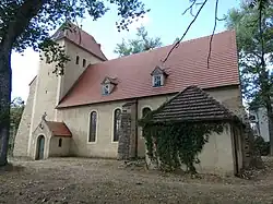 Es handelt sich um eine im Kern romanische Saalkirche des 12. Jahrhunderts mit einem Westquerturm aus verputztem Bruchsteinmauerwerk. An der Südseite des Turmes haben sich romanische Schlitzfenster und ein Rundfenster erhalten.