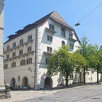 - ↑ a b c d Stadtarchiv Zug: St. Wolfgangshaus. In: Hinter den Fassaden, abgerufen am 27. Juli 2023.