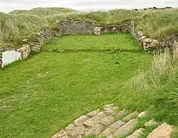 Der mit der Kapelle verbundene Friedhof liegt ebenfalls unter dem Treibsand und menschliche Knochen werden regelmäßig ausgeweht. Eine Frau mit einem Kind auf dem Arm wurde im frühen 20. Jahrhundert in der Nähe des Kapellenzugangs zusammen mit anderen Leichen entdeckt. Alle waren (nach christlichem Ritus) Ost-West-orientiert, jedoch mit gekreuzten Beinen bestattet. Zwölf Steinkisten aus Schieferplatten mit menschlichen Knochen wurden 1980 entdeckt. Mit dem Friedhof sind die Grundmauern einer möglichen Taufkapelle, die im frühen 20. Jahrhundert noch identifiziert werden konnten, unter den Dünen begraben.