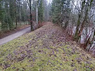 Bahndamm entlang der Weißen Traun Einer der verbliebenen baulichen Reste: Bahndamm entlang der Weißen Traun | |||||||||||||||||||||||||||||||||||||||||||||||||||||||||||||||||||||