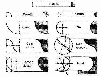 Für die Formen Rundstab, Perlstab und Eierstab gibt es auch die allgemeinere Bezeichnung Astragal.[3]