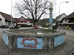 Der Leuenbrunnen ist ein achteckiger Spätrenaissancebrunnen aus dem Jahre 1636. Die reich verzierte Säule enthält Löwenmasken, Wappen und einen sitzenden schildhaltenden Löwen.