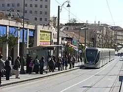 Die Stadtbahn Jerusalem (hebräisch הַרַכֶּבֶת הַקַּלָּה בִּירוּשְׁלִים HaRakkevet haQallah b-Īrūschalajim, englisch Jerusalem Light Rail Transit) ist eine von den Unternehmen Alstom und Connex erbaute und am 19. August 2011 eröffnete Straßenbahn in Jerusalem. Als erster Abschnitt des langfristig mit drei Stammstrecken geplanten Netzes wurde ein 13,8 Kilometer langer Abschnitt (L1, genannt HaQaw haʾAdom, die rote Linie) zwischen Pisgat Seʾev im Norden Jerusalems und dem Herzlberg im Südwesten der Stadt mit 23 Haltestellen errichtet. Diese erste Strecke wird von der Linie L1, genannt HaQaw haʾAdom (die rote Linie) bedient. Verlängerungen nach Neweh Jaʿaqov im Norden und ʿEin Kerem/Hadassa im Südwesten wurden am 27. Februar 2025 eröffnet.[1] Seitdem liegt die Streckenlänge bei 21,5 Kilometern und es gibt 36 Haltestellen. Als Wahrzeichen der Strecke gilt die vom spanischen Architekten Santiago Calatrava erbaute 118 Meter hohe Calatrava-Brücke. Diese Hängebrücke, genannt Weiße Harfe, wurde bereits am 25. Juni 2008 eingeweiht und ist für die Straßenbahn und Fußgänger reserviert.[2] Aufgrund der Einbindung von jüdisch besiedelten Stadtteilen im seit 1967 von Israel besetzten Ostteil Jerusalems ist das Projekt politisch umstritten und Gegenstand palästinensischer Boykottaufrufe. Die zweite Stammstrecke, genannt HaQaw haJaroq (die grüne Linie) ist (Stand März 2025) in Bau.[1] Die dritte geplante Stammstrecke wird HaQaw haKachol (die blaue Linie) genannt. Die blaue Linie, eine Nord-Süd-Verbindung mit zwei Ästen von Ramot bzw. Ramat Eschkol nach Gilo, soll im Endausbau 53 Haltestellen auf einer 31 Kilometer langen Strecke umfassen.[3] Ihre Eröffnung ist (Stand März 2025) nicht vor 2030 zu erwarten.[1] Die Straßenbahn ist die erste des Landes und war bis zur Eröffnung der ersten Linie von Danqal in Tel Aviv im Jahre 2023 die Einzige des Landes.