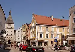 - Im 13. Jahrhundert erfolgte eine planmäßige Erweiterung durch die Anlage eines Stadtplatzes in Nord-Süd-Richtung, in dessen nördlicher Verlängerung befindet sich die 1260 erbaute Innbrücke. Die Begrenzung erfolgte mit einer Ummauerung mit einem äußeren Graben. Die Stadtausgänge im Norden, Osten und Süden sind mit Toren überbaut, das südliche Stadttorturm ist erhalten.