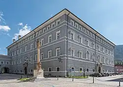 Das „Neues Schloss“ genannte Stadtschloss bestimmt die Südostecke der Stadt. Es besitzt vier dreigeschoßige Trakte mit abschließendem Mezzaningeschoß. Diese umfassen einen rechteckigen Innenhof. Ein weiterer L-förmiger freistehender zweigeschoßiger Bau begrenzt den Hof im Südosten. Das Schloss besitzt zwei Treppentürme mit Kegeldächern, die in den westlichen Hofecken über oktogonalem Grundriss errichtet wurden. An der nordwestlichen und südwestlichen Seite des Schlosses gibt es jeweils ein Einfahrtsportal. Das Schloss wurde von Baumeister Daniel Deutta unter Rudolf von Raitenau in der Zeit von 1607 bis 1615 errichtet. Der Bau war um rund 1620–1625 fast abgeschlossen. Ein bestehendes Gebäude in der Südostecke der Stadt wurde in den Bau integriert. Für die Errichtung dürfte es notwendig gewesen sein, bestehende Bürgerhäuser abzubrechen. Unter Christoph von Lodron wurde das Schloss von Baumeister Anton Riebeler schließlich 1651–1654 fertig gestellt und umgebaut. Beim Stadtbrand 1792 wurde das Gebäude schwer beschädigt und wurde danach wieder instand gesetzt. In den 1960er Jahren wurde im Schloss eine Schule eingerichtet. Dabei wurden die vorher vorhandenen Grabendächer zu Walmdächern umgebaut und das Mezzaningeschoß ausgebaut und mit Fenstern versehen. Ein Turnsaal wurde an die Ostseite des Schlosses angebaut.[32] Das Gebäude wird heute weiterhin als Schule genutzt, zusätzlich beherbergt es Veranstaltungsräume und eine Bibliothek.