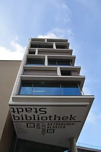 - ↑ Elisabeth Sträter: Ein Jahrhundertbau – Die neue Nürnberger Zentralbibliothek. (PDF) Bibliotheksforum Bayern, Juli 2013, abgerufen am 8. August 2024.