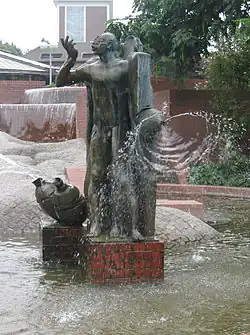 Das Zentrum des Parks bildet der von Prof. Eberhard Linke entworfene Gauklerbrunnen. Der etwa 30 Meter lange und bis zu 12 Meter breite Brunnen überwindet eine Höhendifferenz von 4 Metern. Das Wasser fließt in Kaskaden vom Quellbecken in das untere Brunnenbecken. Hier stehen die namensgebenden, bronzenen Gauklerfiguren, welche das Brunnenwasser auf unterschiedliche Art versprühen. Der Brunnen wird im Sommer häufig von Kindern als Plansch- und Badebecken genutzt.