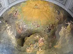 - IESU CHRISTO / MAGNO PECCATORUM REDEMTORI HOC TEMPLUM CONSECRATUM EST / A MAGNO PECCATORE REDEMTO / DEI GRATIA FRIDERICO DUCE MEGAPOLITANO / AEDIFICARI COEPTUM ANNO MDCCLXV MENSE MARTIO / FINITUM ANNO MDCCLXX MENSE IULIO