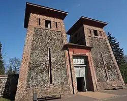 - Jesus Christus / dem großen Erlöser der Sünder ist dieser Tempel geweiht / von einem großen erlösten Sünder / Friedrich, durch Gottes Gnade mecklenburgischer Herzog / zu bauen begonnen im Jahr 1765 im Monat März / vollendet im Jahr 1770 im Monat Juli