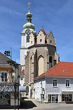 Die Pfarre wird vor dem Jahre 1050 angenommen. Mit Urkunde aus dem Jahre 1094 gehört die Pfarre und die Kirche zum bayerischen Benediktinerkloster Formbach. Ab der ersten Hälfte des 12. Jahrhunderts bis zum Jahre 1782 gehörte Pfarre und Kirche kirchlich zum Erzbistum Salzburg und gehört seit 1785 zur Erzdiözese Wien. Anfang des 16. Jahrhunderts wird die Pfarre eine landesfürstliche Lehenspfarre. Im Jahre 1591 ging die Pfarre als Patronat an Ludwig von Hoyos, welcher sich und seine Nachkommen verpflichtete, die Pfarre und die dazugehörigen Benefizien mit katholischen Pfarrern zu besetzen. Im Jahre 1631 wurde die Pfarre dem neu gegründeten Minoritenkloster, einer Gründung von Hans Balthasar von Hoyos, inkorporiert.[1]