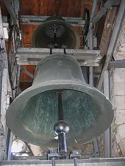 Im grossen Turm hängt ein klanglich herausragendes Geläute aus sieben Glocken. Die historische dritte Glocke wurde 1960 von Friedrich Wilhelm Schilling (Heidelberg) um sechs Glocken ergänzt. Die Glocken mit einem Gesamtgewicht von rund 16'000 Kilogramm hängen in einem massiven Stahlglockenstuhl an geraden Stahljochen. Samstags um 15:00 Uhr wird für rund fünf Minuten mit allen Glocken der Sonntag eingeläutet.[4]