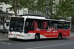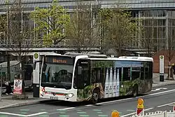 Im Frühjahr 2007 begannen die Stadtwerke Aschaffenburg unter Bezuschussung des Freistaates Bayern mit dem Neubau des westlich an den Bahnhof angrenzenden Regionalen Omnibusbahnhofs.[41] Zum Dezember 2018 führten die Stadtwerke für eine Laufzeit von zwei Jahren einen kostenlosen Nahverkehr an einem Tag in der Woche ein.[42] Seit 2022 setzen die Stadtwerke drei Elektro- und 13 Hybridbusse im ÖPNV ein (Stand 2022).[43][44] Im Februar 2023 bestellten die Stadtwerke für den zukünftigen Einsatz 12 Wasserstoffbusse.[43][45][46]