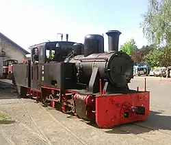 In den Jahren ab 1990 gab es beim Bahnhof Stainz auch eine kleine Feldbahnanlage,[35] sie war am 9. September 1990 eröffnet worden.[36] Eine Feldbahnlok, die JW 15, war 1989 von einem Ziegelwerk in Grafenstein übernommen worden.[37] Diese Anlage war danach längere Zeit nicht in Betrieb. Sie wurde 2012/13 erneuert, 2014 war sie betriebsfertig und wurde mit Fahrten am 10. Mai wiedereröffnet.[38][39] 2025 umfasste sie ca. 3,5 km Gleise, davon ein Rundkurs von ca. 1 km Länge.[40] Ihre Fahrzeuge stammten teilweise aus einer Feldbahnanlage, die von Herrn Valdo Longo zunächst in Mooskirchen, dann in Edelsbach bei Feldbach aufgebaut worden war und die 2006 nach Stainz verkauft worden war.[41] Eine der Lokomotiven war eine JW 20, die von Longo 1968 erworben worden war.[42] Eine weitere Lokomotive, eine Ns 2 f mit ca. 6 t, stammt aus der ehemaligen Lokomotivfabrik Babelsberg bei Berlin, ein Wagen wurde 2025 restauriert und erhielt (als Erinnerung an die Gattin des Höllerhansls) den Namen Cäcilia.[40] Das Sonderfahrzeug dieser Feldbahn bestand aus einer Kreissäge auf einem Feldbahnfahrgestell, die von einem Einzylinder-Dieselmotor von Warchalowski betrieben und zum Holzschneiden verwendet wurde. Das Gerät wurde in der Zeit der Betriebspause an das Grubenbahnmuseum Knappenberg verkauft.[43]