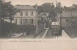 Die Stadt Le Havre wird von der Côte geprägt, einer Hochebene, die mehr als 80 Höhenmeter über dem Stadtzentrum liegt und traditionell als Wohngebiet genutzt wird. Der steile Abhang und das Bevölkerungswachstum ließen in der zweiten Hälfte des 19. Jahrhunderts eine Nachfrage nach einem effizienten Verkehrsmittel entstehen. 1879 wurde bei der Stadtverwaltung der Bau einer Art Straßenbahn-Aufzug beantragt, doch das seltsam anmutende Projekt kam aus finanziellen Gründen nicht zustande.[1] 1886 präsentierte ein Pariser Ingenieur namens Lévêque ein ernsthafteres Projekt, das den Bau einer Standseilbahn vorsah. Die Stadt erteilte eine Konzession und Lévêque gründete die Gesellschaft Chemin de Fer de la Côte, deren Hauptaktionär er war.[2]