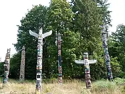Die größte indianische Siedlung war Xwayxway – heute Lumbermen’s Arch – dessen genaue Ausdehnung nicht klar ist, und wo einem Brief des Anthropologen Charles Hill-Tout zufolge zahlreiche Skelette gefunden worden waren.[2] Doch wurde sie beim Straßenbau eingeebnet. Das Große Haus maß demnach 60 mal 20 m; es beherbergte 11 Familien mit zusammen 100 Menschen. Ein anderes Squamish-Dorf im Park hieß Chaythoos, hinzu kamen Slhxi'7elsh (Siwash Rock), Ch’elxwa7elch (Lost Lagoon/Coal Harbour), Oxachu (Beaver Lake) und Papiyek (Brockton Point) sowie Skwtsa7s (vielleicht Deadman’s Island).