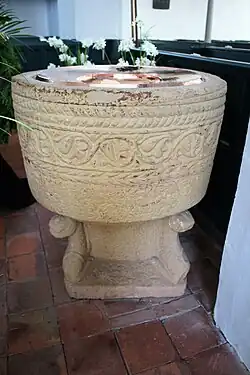Der Taufstein aus Bentheimer Sandstein stammt aus dem frühen 13. Jahrhundert. Er ist von einem Rankenfries umgeben und fußt auf vier stilisierten Löwen. Die Kanzel entstand etwa um 1600, der Schalldeckel im 19. Jahrhundert.[6]