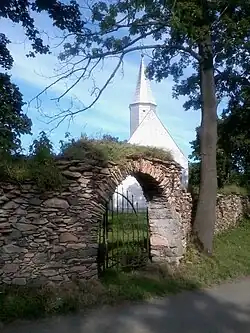 - Die Kirche ist von einer Wehrmauer mit einem gewölbten Tor und Schießscharten umgeben. Die Mauer wurde 1884 renoviert.