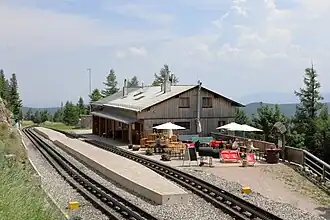 Neben der Hütte befindet sich eine Ausweichstelle für die Züge.