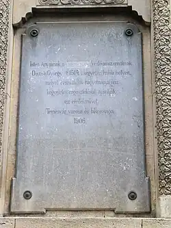 Die Rückseite der Kapelle ist mit einer Inschrift in ungarischer Sprache versehen, deren Übersetzung sinngemäß lautet: „Dort wo György Dózsa einen schrecklichen Tod erlitt, bieten die frommen Menschen der Stadt Timișoara der Schutzpatronin Heilige Maria im Jahre 1906 dieses Denkmal dar.“