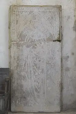 An der Wand des südlichen Seitenschiffs ist der Grabstein von Isabeau, der Gemahlin von Guillaume Grisart, aus dem 13. Jahrhundert angebracht. Auf dem Grabstein ist ein Dreipassbogen eingeritzt, unter dem die Verstorbene mit gefalteten Händen steht. Sie ist in einen Umhang mit elegantem Faltenwurf gehüllt. Am Rand des Grabsteins ist eine Inschrift eingemeißelt.[4]