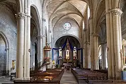 Die Kirche wurde auf einem gotischen Grundriss errichtet und 1330 vollendet. Das Hauptgebäude erhebt sich auf Bündelpfeilern: die kleinen stützen das Kreuzrippengewölbe, und die großen tragen die Doppelbögen. Die Seitenkapellen wurden während des 16., 17. und 18. Jahrhunderts in die Mauern der Seitenschiffe eingelassen. Die Schlusssteine im Gewölbe zeigen ein Wappen, Christus als das Lamm Gottes, den Hl. Georg, den Erzengel Michael und die Hl. Martha. Ringsum hängen Gemälde, die zum Teil aus dem 16. Jahrhundert stammen, unter ihnen sieben Werke von Joseph-Marie Vien, die aus dem Leben der Hl. Martha erzählen. In der Vorhalle befindet sich das wertvollste Gemälde, das die Landung der Hl. Martha und ihrer Familie darstellt. Wie die Heilige den Tarasque zähmt, zeigt ein Gemälde hinter der Kanzel, das von Charles André van Loo stammt.[2]