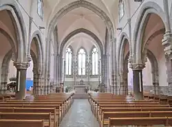 Die Kirche Ste-Thumette erhebt sich auf dem Grundriss eines lateinischen Kreuzes und besteht aus einem fünfjochigen Kirchenschiff, einem Querschiff und dem Chorraum im Osten, der mit einer dreiseitig geschlossenen Apsis endet. Zur Ausstattung gehört der Hauptaltar mit einem Tabernakel aus dem 19. Jahrhundert, montiert auf einer Truhe, an der zwei Tafeln aus dem 18. Jahrhundert befestigt sind. Das Taufbecken aus Granit stammt vermutlich aus der alten Kirche. Zur weiteren Ausstattung gehören ein Kruzifix aus dem 16. Jahrhundert, hölzerne Statuen der Jungfrau Maria, 16. Jahrhundert, Johannes des Täufers, 17. Jahrhundert, Jakobus der Ältere, 17. Jahrhundert, Matthäus, 18. Jahrhundert und eine Statue des heiligen Cornély, die aus der Kapelle St-Mathieu stammt sowie Statuen der heiligen Thumette und der heiligen Ursula, 18. Jahrhundert, die aus der gleichen Werkstatt wie die Figur des heiligen Cornély stammen. Die Kanzel ist verziert mit einer älteren Tafel, die den heiligen Johannes Evangelist darstellt. In der Sakristei befinden sich ein Kruzifix aus dem 18. Jahrhundert sowie eine Apostelstatue aus dem 17. Jahrhundert.[2][3] In der Fernsehserie Kommissar Dupin diente die Kirche 2017 als Drehort.[4]