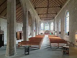 Die heutige Kirche wurde unter Einbeziehung älterer Teile im 16. Jahrhundert im Stil der Flamboyantgotik errichtet und besitzt über der Westfassade den für die Region typischen Glockengiebel. Im Zuge der Französischen Revolution wurde die Kirche aufgegeben und zur Ruine. Der Glockengiebel stürzte 1808 ein.