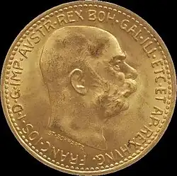 Goldmünze von Stefan Schwartz mit der Darstellung von Kaiser Franz Joseph I.