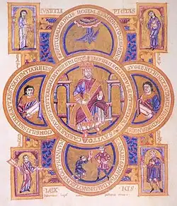 - ↑ Vgl. Stefan Weinfurter: Sakralkönigtum und Herrschaftsbegründung um die Jahrtausendwende. Die Kaiser Otto III. und Heinrich II. in ihren Bildern. In: Helmut Altrichter (Hrsg.): Bilder erzählen Geschichte. Freiburg i. Br. 1995, S. 47–103.