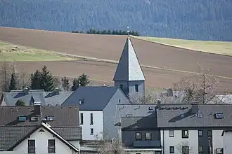 - Evangelisch-lutherische Filialkirche St. Johannes, 1955/56 nach Entwurf von Rudolf Claasen (Coburg) errichtet.[12]