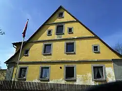 - Haus Nr. 9: Bauernhaus, eingeschossiger Satteldachbau, Zwerchhaus, mit Gliederung teils in Naturstein, bezeichnet 1802[18]