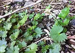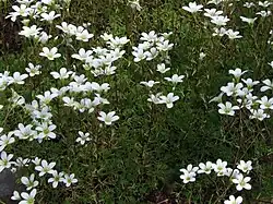 Als saxifraga (gelegentlich auch saxifragia[8]) bzw. steinbrech wurden früher[9] neben dem Knöllchen-Steinbrech (Weißer Steinbrech, im Mittelalter auch wyß steinbreche und wyt steynbrecke sowie lateinisch Saxifraga alba[10])[11] jedoch früher auch andere „steinbrechende“ Pflanzen wie Echter Steinsame,[12]Kleine Bibernelle und (insbesondere als „Roter Steinbrech“) Kleines Mädesüß[13] und die Lampionblume[14] sowie manche Streifenfarne[15] bezeichnet.[16][17][18]