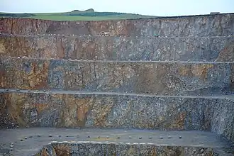 Der Abbau kann sich in die Tiefe und Breite richten oder bei Hanglage horizontal betrieben werden. Die Mehrzahl sind Über-Tage-Steinbrüche, auch als offene Steinbrüche bezeichnet. In besonderen Fällen wird das Gestein in unterirdischen Steinbrüchen abgebaut.[1][2][3][4][5] Viele Steinbrüche dienen der Gewinnung von Massenrohstoffen für den Verkehrswegebau und als Zulieferer von Zuschlagstoffen für die verarbeitende Industrie. Mengenmäßig erst weit danach kommen Steinbrüche für Werksteine (flächig formatierte Werkstücke).