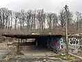 Der Carport 1 ist der westlichste Teil der Anlage. Heute besteht es noch aus verrosteten Trägern und Wellblechplatten als Dach.