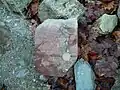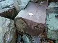 Der Sandsteinbrocken an der Flanke des Abbaubereichs ist nie gefördert worden, nur die Bodenbedeckung wurde abgetragen, sodass der Keil etwa 2–3 Meter unter Getseinsoberkante liegt. Kleine Schieferbruchstücke liegen heute als oberste Schicht auf dem Keil und sind nur spärlich von einigen Büschen bewachsen. Der gesamte Keil ist bis auf das Seeniveau von Rissen durchzogen und es sind mehrere Gesteinseinheiten erkennbar, welche konsekutiv in den Abbaubereich kippen.