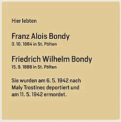 - ↑ Franz Alois Bondy, auf juden-in-st-poelten.at