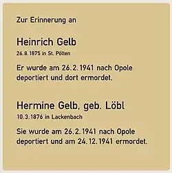 - ↑ Heinrich und Hermine Gelb, auf juden-in-st-poelten.at