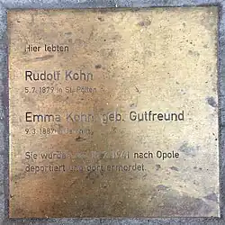 4. Okt. 2018 | Rudolf und Emma Kohn wurden nach Opole deportiert. Sie wurden im Holocaust ermordet[4] |