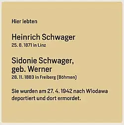 - ↑ Heinrich und Sidonia Schwager, auf juden-in-st-poelten.at
