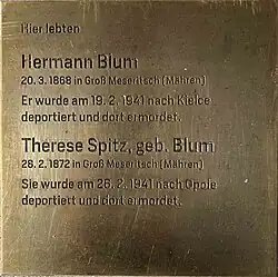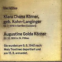 3. Okt. 2019 | Verstarb nach der Zwangsumsiedelung nach Wien[21] |