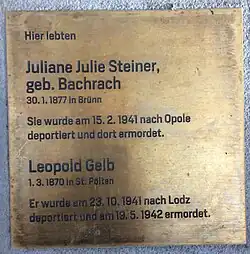 3. Okt. 2019 | Juliane (Julie) Steiner wurde nach dem Umzug nach Wien nach Opole deportiert. Sie wurde im Holocaust ermordet[31] |