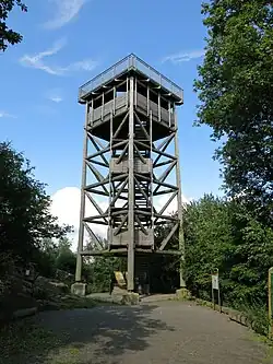- ↑ a b c Höhenangaben über der gepflasterten Bodenplatte laut privat durchgeführten Messungen (danach liegt die obere Aussichtsplattform auf 16,5 m Turmhöhe)